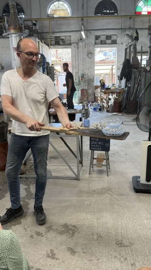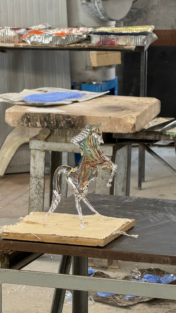 Our first stop was the island of Murano, where we witnessed a pair of artisans working their craft in front of a kiln that registered a whopping 2100 degrees Fahrenheit – roughly the same temperature as lava. It was amazing to see the unrivaled level of skill…after a mere 30+ years of practice.
