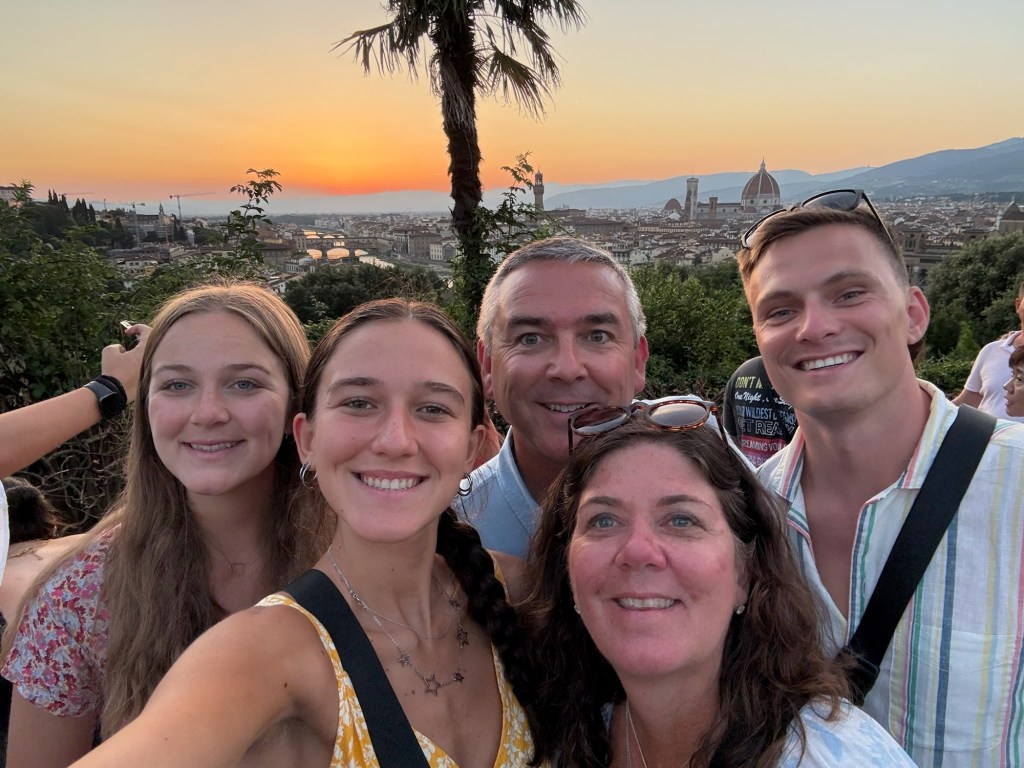 We’re really fortunate that our lodging is just a block off the Arno River and pretty much anything you want to do or see in the city is within a 10-minute walk. The vibe here is unlike anything we’ve ever experienced before.We had a wonderful dinner last night at Buca Mario (highly recommend), where Kara and I were fortunate enough to share our 26th anniversary with the kids, some limoncello and of course, gelato. Can’t wait to start exploring tomorrow!