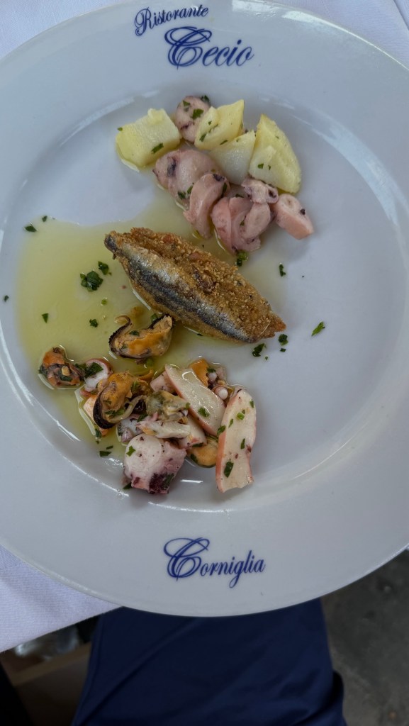The Cinque Terre region is know for its seafood (obviously) and one-of-a-kind pesto that includes potatoes and green beans among the more traditional ingredients. Fortunately, we were able to enjoy both as part of the tour.