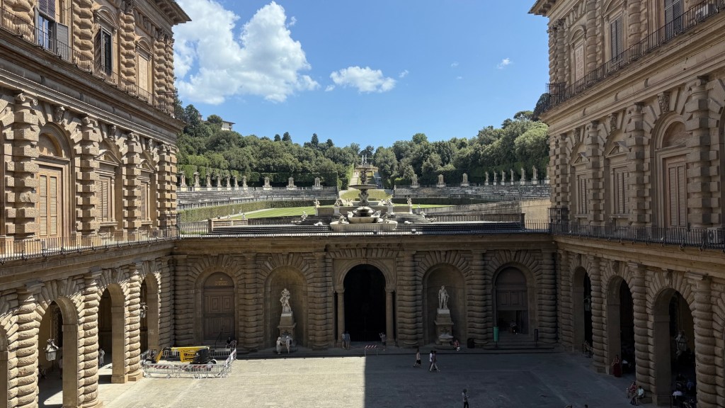 Because Eleonora di Toledo wanted a garden, the Medicis moved from Palazzo Veccio to Palazzo Pitti in the mid 1500s.