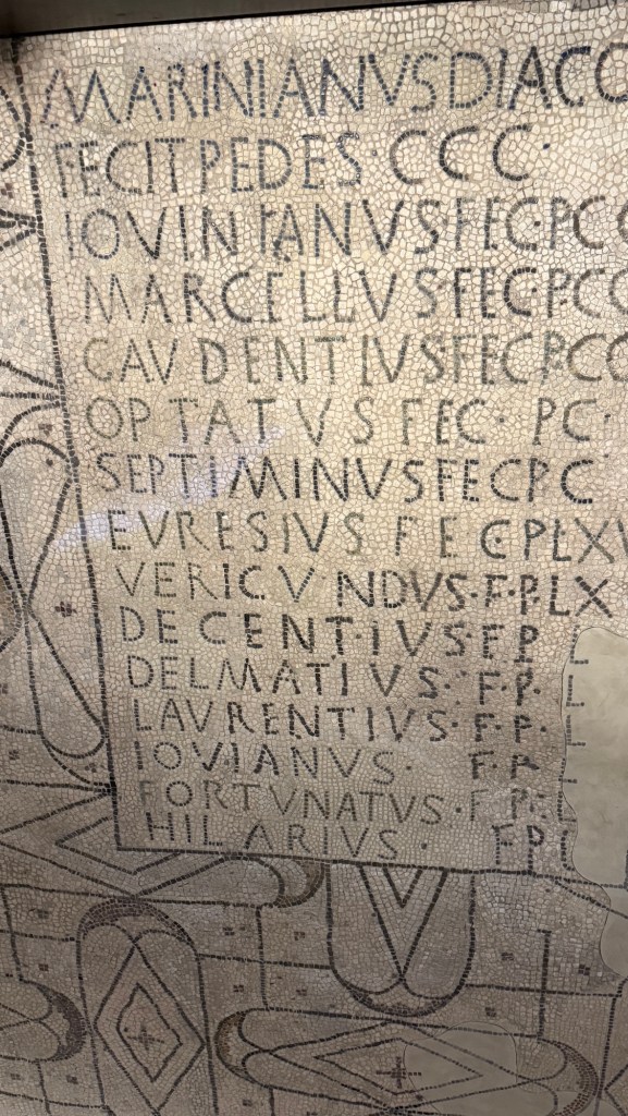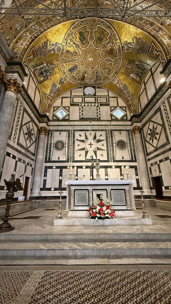 The Baptistery was originally built in the 5th century, although the marble veneer is “only” 1,000 years old. You can still see the tile from 2nd century Roman houses underneath the current floor.
