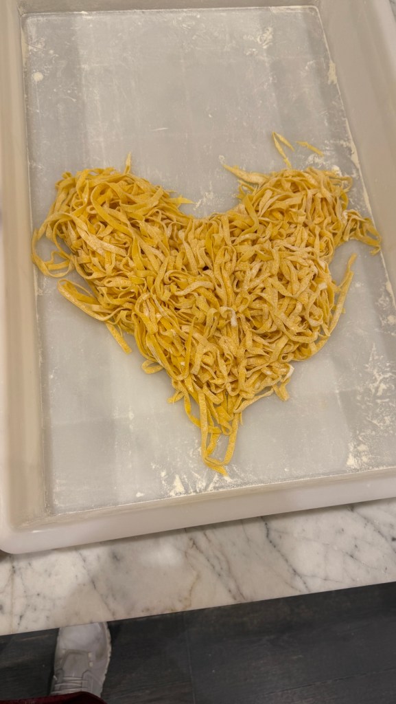 We booked a pasta making class to cap off our last full day in Florence. Amazingly, we were paired with a Philadelphia couple celebrating their 25th anniversary (Kara and I just celebrated number 26 in Milan) and their two daughters – one of whom is starting college in the fall to become a teacher. You can’t make this stuff up.